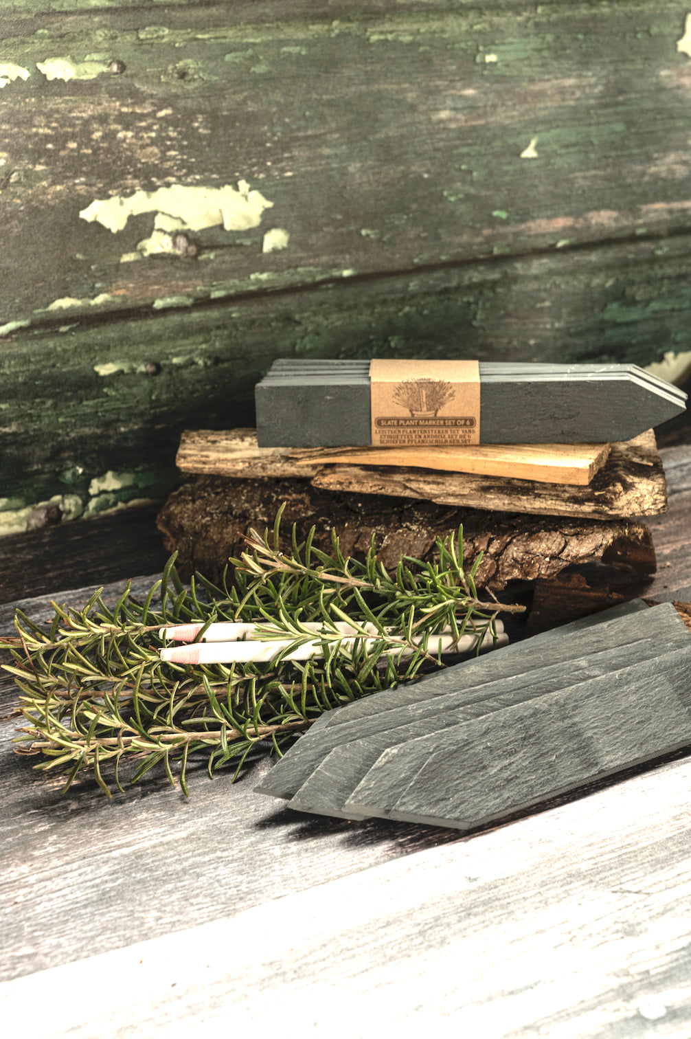 Nachhaltiger und viel schöner lässt sich das Kuddelmuddel im Beet verhindern mit den Pflanzschildern aus echtem Schieferstein. Sie werden mit dem beigefügtem weißen Wachsstift beschriftet. Wieder und wieder. Und Schiefer als natürliches Material ergänzt den Cottage Garten perfekt.