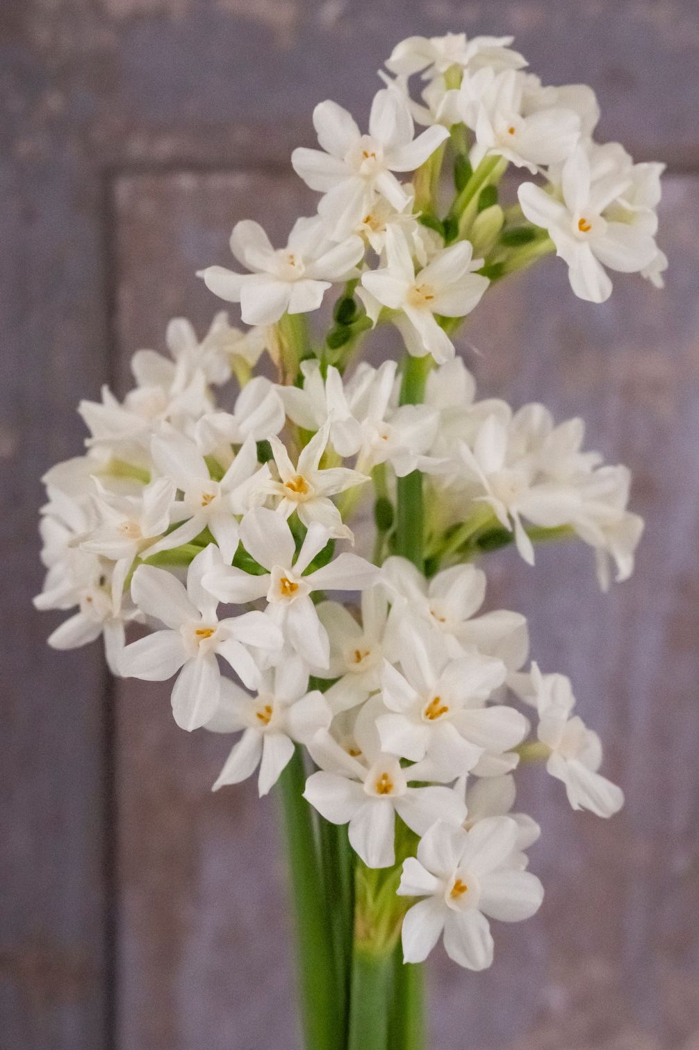 Ziva bringt mit ihren strahlend weißen Blüten und goldenen Staubgefäßen festlichen Glanz in die kalte Jahreszeit. Ihre zarten, sternförmigen Blüten sitzen dicht aneinander und verströmen einen wunderbar intensiven Duft, der Dein Zuhause erfüllt.