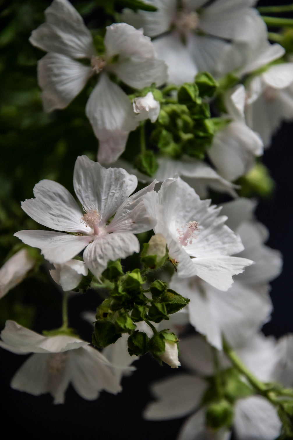 Frische, reinweiße Blüten und leicht nach Moschus duftende Blätter. Ehrlich gesagt, fällt es mir schwer, mich zwischen der Weißen Moschus Malve, der Mauretanischen Malve, der Rosen Malve, und der Wilden Malve zu entscheiden.