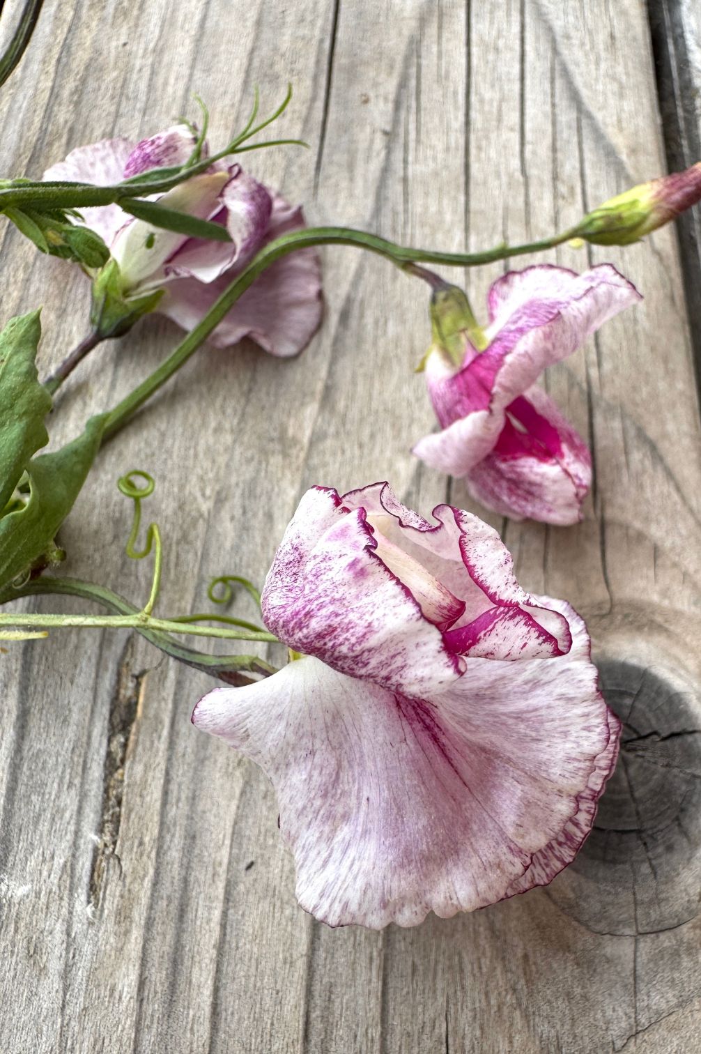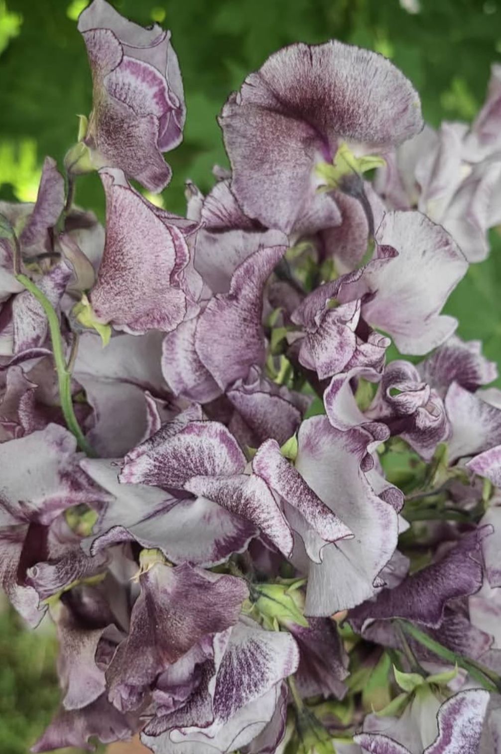 Eine unfassbar schöne Sorte. Die Blüten dieser Duftwicke faszinieren mit ihrer rauchig blau-violett-grauen Maserung. Jede ist ein kleines Kunstwerk – zart, verspielt und voller Charakter.