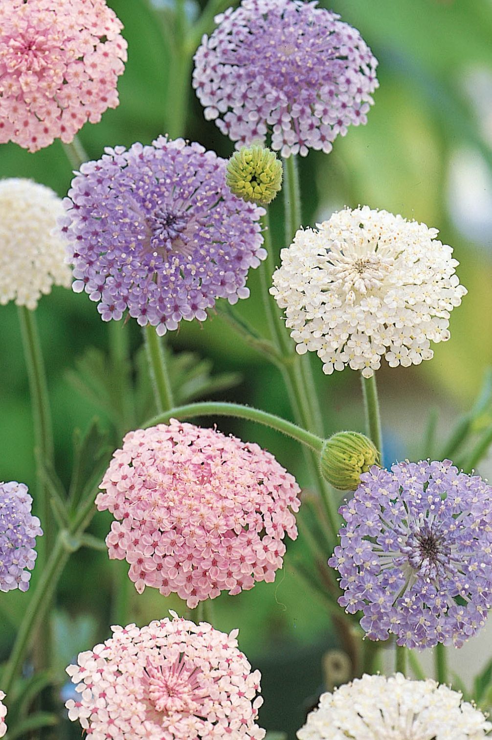 Dauerblüher! Die Blaudolde ist eine bezaubernde Sommerblume, die mit zarten, doldenförmigen Blüten in einer harmonischen Mischung aus Weiß, Rosa und Blau erscheint. Ihre filigranen Blütenstände bestehen aus Hunderten winziger Blüten, die in Beeten und vor allem in Blumensträußen sehr schön und natürlich wirken. Vielseitige Pflanze im Sommergarten. Sie eignet sich besonders gut als haltbare Schnittblume.