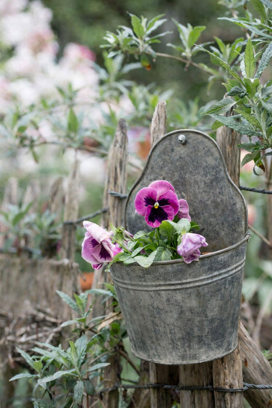 Altzink Blumentopf mit Haken