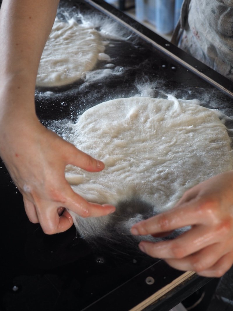 - Es werden zum Filzen nur ökologische Neutralseife und Leitungswasser verwendet.